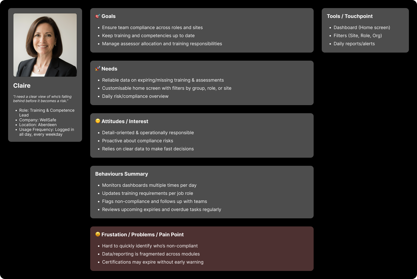 When I joined, the platform experience was fragmented across modules and inconsistent in UI patterns. Admin users—often responsible for compliance oversight—had to navigate multiple areas to identify risk, spot gaps, and trigger actions. The Home screen in particular lacked a clear “command centre” view to support day-to-day operational decision making.